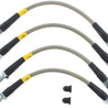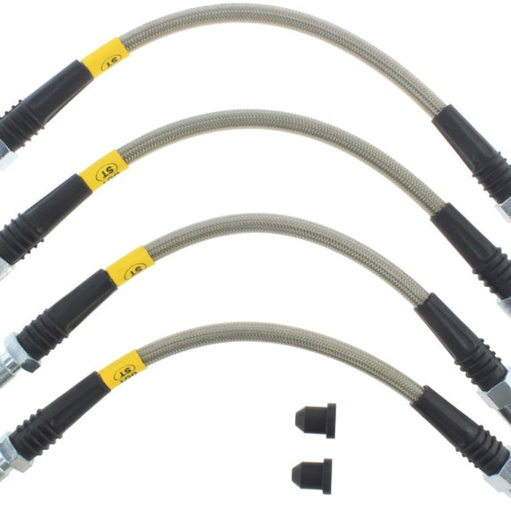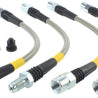 StopTech Stainless Steel Braided Brake Lines provide a quicker; firmer; more consistent pedal response by maintaining consistent brake pressure. Additionally; stainless steel lines provide precision brake modulation; especially during threshold braking. The improvement in pedal feel is more dramatic on older vehicles where the factory rubber line may have softened and swelled due to age. A variety of end fittings are available to meet application needs. All fittings are engineered for proper fit and durability. All necessary brackets and fasteners are included with each line kit.
