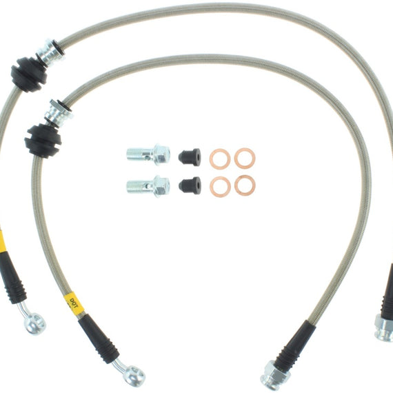 StopTech Stainless Steel Braided Brake Lines provide a quicker; firmer; more consistent pedal response by maintaining consistent brake pressure. Additionally; stainless steel lines provide precision brake modulation; especially during threshold braking. The improvement in pedal feel is more dramatic on older vehicles where the factory rubber line may have softened and swelled due to age. A variety of end fittings are available to meet application needs. All fittings are engineered for proper fit and durability. All necessary brackets and fasteners are included with each line kit.