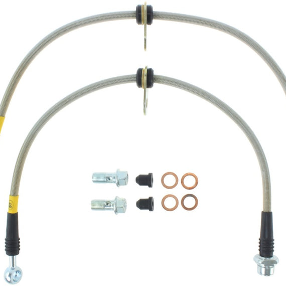 StopTech Stainless Steel Braided Brake Lines provide a quicker; firmer; more consistent pedal response by maintaining consistent brake pressure. Additionally; stainless steel lines provide precision brake modulation; especially during threshold braking. The improvement in pedal feel is more dramatic on older vehicles where the factory rubber line may have softened and swelled due to age. A variety of end fittings are available to meet application needs. All fittings are engineered for proper fit and durability. All necessary brackets and fasteners are included with each line kit.