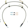 StopTech Stainless Steel Braided Brake Lines provide a quicker; firmer; more consistent pedal response by maintaining consistent brake pressure. Additionally; stainless steel lines provide precision brake modulation; especially during threshold braking. The improvement in pedal feel is more dramatic on older vehicles where the factory rubber line may have softened and swelled due to age. A variety of end fittings are available to meet application needs. All fittings are engineered for proper fit and durability. All necessary brackets and fasteners are included with each line kit.