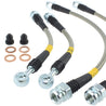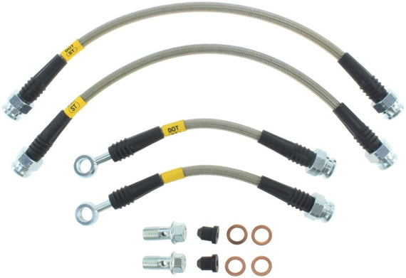 StopTech Stainless Steel Braided Brake Lines provide a quicker; firmer; more consistent pedal response by maintaining consistent brake pressure. Additionally; stainless steel lines provide precision brake modulation; especially during threshold braking. The improvement in pedal feel is more dramatic on older vehicles where the factory rubber line may have softened and swelled due to age. A variety of end fittings are available to meet application needs. All fittings are engineered for proper fit and durability. All necessary brackets and fasteners are included with each line kit.
