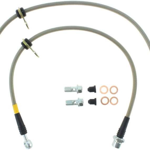 StopTech Stainless Steel Braided Brake Lines provide a quicker; firmer; more consistent pedal response by maintaining consistent brake pressure. Additionally; stainless steel lines provide precision brake modulation; especially during threshold braking. The improvement in pedal feel is more dramatic on older vehicles where the factory rubber line may have softened and swelled due to age. A variety of end fittings are available to meet application needs. All fittings are engineered for proper fit and durability. All necessary brackets and fasteners are included with each line kit.