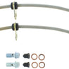 StopTech Stainless Steel Braided Brake Lines provide a quicker; firmer; more consistent pedal response by maintaining consistent brake pressure. Additionally; stainless steel lines provide precision brake modulation; especially during threshold braking. The improvement in pedal feel is more dramatic on older vehicles where the factory rubber line may have softened and swelled due to age. A variety of end fittings are available to meet application needs. All fittings are engineered for proper fit and durability. All necessary brackets and fasteners are included with each line kit.