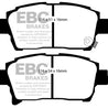 EBC Yellowstuff is an aramid fibre based brake compound with high brake effect form cold and is possibly one of the first ever compounds that can be used for STREET AND TRACK DRIVING. These pads do not require warm up but do get even stronger under the heat of hard driving. These are not a low dust pad and if your desire is for a low dust premium street use pad, you should consider EBC Redstuff.When considering full race use, Yellowstuff has been a strong favourite, having been used for two years in the Swedish Camaro Cup and at numerous other race events where a stock caliper system is fitted.It is also the choice of 90-percent of the Mazda MX5 Miata competitors in the UK race series and has an unblemished record as rotor friendly track pad for vehicles up to 2000 lbs weight or 200 BHP.In the USA the SCCA and NASA drivershave been testing Yellowstuff with feedback and good reports POURING in from a 543 test driver major market proving event with these groups. Read that figure again 543 test drivers.There is no guesswork here.
