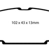 EBC Yellowstuff is an aramid fibre based brake compound with high brake effect form cold and is possibly one of the first ever compounds that can be used for STREET AND TRACK DRIVING. These pads do not require warm up but do get even stronger under the heat of hard driving. These are not a low dust pad and if your desire is for a low dust premium street use pad, you should consider EBC Redstuff.When considering full race use, Yellowstuff has been a strong favourite, having been used for two years in the Swedish Camaro Cup and at numerous other race events where a stock caliper system is fitted.It is also the choice of 90-percent of the Mazda MX5 Miata competitors in the UK race series and has an unblemished record as rotor friendly track pad for vehicles up to 2000 lbs weight or 200 BHP.In the USA the SCCA and NASA drivershave been testing Yellowstuff with feedback and good reports POURING in from a 543 test driver major market proving event with these groups. Read that figure again 543 test drivers.There is no guesswork here.