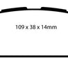 There are TWO reasons our customers love Redstuff, First because they are the lowest dust pad we have encountered by reducing dust by 60-90-percent. Plus the minimal dust you see is very easily removed with a simple sponge wash as it contains no steel fibre particles as in ALL OTHER pads. Second they brake like an alligator right from cold (as good as Original pads or better) and just get better as they heat up.This material is a Synthetic Fiber based brake compound enhanced with ceramic particles. If you have previously tried EBC redstuff (pre-ceramic compound) this material is light years ahead. It lasts longer; it brakes better and is quieter. Being a hard wearing pad, bed-in times can be as long as 1000 miles and drivers must be patient until the pad takes up the shape of their disc (brake rotor). This is a truly impressive fast road pad for repeated heavy braking.It emits far less dust than semi-metallic pads and has been proven to stop a passenger car/sedan/sport compact/hot hatch 13 metres quicker than OEM pads from 100mph/160kph. Features EBC Brake-In surface coating which conditions rotor surface and accelerates pad bed-in. Nominal friction coefficient 0.5 with approx. 50-percent dust reduction.Most EBC Red Ceramic pads are approved to ECE R90 brake safety regulation.