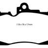 There are TWO reasons our customers love Redstuff, First because they are the lowest dust pad we have encountered by reducing dust by 60-90-percent. Plus the minimal dust you see is very easily removed with a simple sponge wash as it contains no steel fibre particles as in ALL OTHER pads. Second they brake like an alligator right from cold (as good as Original pads or better) and just get better as they heat up.This material is a Synthetic Fiber based brake compound enhanced with ceramic particles. If you have previously tried EBC redstuff (pre-ceramic compound) this material is light years ahead. It lasts longer; it brakes better and is quieter. Being a hard wearing pad, bed-in times can be as long as 1000 miles and drivers must be patient until the pad takes up the shape of their disc (brake rotor). This is a truly impressive fast road pad for repeated heavy braking.It emits far less dust than semi-metallic pads and has been proven to stop a passenger car/sedan/sport compact/hot hatch 13 metres quicker than OEM pads from 100mph/160kph. Features EBC Brake-In surface coating which conditions rotor surface and accelerates pad bed-in. Nominal friction coefficient 0.5 with approx. 50-percent dust reduction.Most EBC Red Ceramic pads are approved to ECE R90 brake safety regulation.
