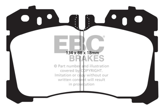 There are TWO reasons our customers love Redstuff, First because they are the lowest dust pad we have encountered by reducing dust by 60-90-percent. Plus the minimal dust you see is very easily removed with a simple sponge wash as it contains no steel fibre particles as in ALL OTHER pads. Second they brake like an alligator right from cold (as good as Original pads or better) and just get better as they heat up.This material is a Synthetic Fiber based brake compound enhanced with ceramic particles. If you have previously tried EBC redstuff (pre-ceramic compound) this material is light years ahead. It lasts longer; it brakes better and is quieter. Being a hard wearing pad, bed-in times can be as long as 1000 miles and drivers must be patient until the pad takes up the shape of their disc (brake rotor). This is a truly impressive fast road pad for repeated heavy braking.It emits far less dust than semi-metallic pads and has been proven to stop a passenger car/sedan/sport compact/hot hatch 13 metres quicker than OEM pads from 100mph/160kph. Features EBC Brake-In surface coating which conditions rotor surface and accelerates pad bed-in. Nominal friction coefficient 0.5 with approx. 50-percent dust reduction.Most EBC Red Ceramic pads are approved to ECE R90 brake safety regulation.