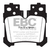 There are TWO reasons our customers love Redstuff, First because they are the lowest dust pad we have encountered by reducing dust by 60-90-percent. Plus the minimal dust you see is very easily removed with a simple sponge wash as it contains no steel fibre particles as in ALL OTHER pads. Second they brake like an alligator right from cold (as good as Original pads or better) and just get better as they heat up.This material is a Synthetic Fiber based brake compound enhanced with ceramic particles. If you have previously tried EBC redstuff (pre-ceramic compound) this material is light years ahead. It lasts longer; it brakes better and is quieter. Being a hard wearing pad, bed-in times can be as long as 1000 miles and drivers must be patient until the pad takes up the shape of their disc (brake rotor). This is a truly impressive fast road pad for repeated heavy braking.It emits far less dust than semi-metallic pads and has been proven to stop a passenger car/sedan/sport compact/hot hatch 13 metres quicker than OEM pads from 100mph/160kph. Features EBC Brake-In surface coating which conditions rotor surface and accelerates pad bed-in. Nominal friction coefficient 0.5 with approx. 50-percent dust reduction.Most EBC Red Ceramic pads are approved to ECE R90 brake safety regulation.