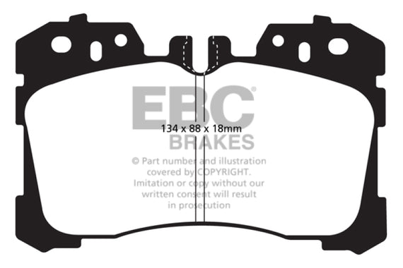 EBC Yellowstuff is an aramid fibre based brake compound with high brake effect form cold and is possibly one of the first ever compounds that can be used for STREET AND TRACK DRIVING. These pads do not require warm up but do get even stronger under the heat of hard driving. These are not a low dust pad and if your desire is for a low dust premium street use pad, you should consider EBC Redstuff.When considering full race use, Yellowstuff has been a strong favourite, having been used for two years in the Swedish Camaro Cup and at numerous other race events where a stock caliper system is fitted.It is also the choice of 90-percent of the Mazda MX5 Miata competitors in the UK race series and has an unblemished record as rotor friendly track pad for vehicles up to 2000 lbs weight or 200 BHP.In the USA the SCCA and NASA drivershave been testing Yellowstuff with feedback and good reports POURING in from a 543 test driver major market proving event with these groups. Read that figure again 543 test drivers.There is no guesswork here.
