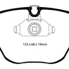 EBC Yellowstuff is an aramid fibre based brake compound with high brake effect form cold and is possibly one of the first ever compounds that can be used for STREET AND TRACK DRIVING. These pads do not require warm up but do get even stronger under the heat of hard driving. These are not a low dust pad and if your desire is for a low dust premium street use pad, you should consider EBC Redstuff.When considering full race use, Yellowstuff has been a strong favourite, having been used for two years in the Swedish Camaro Cup and at numerous other race events where a stock caliper system is fitted.It is also the choice of 90-percent of the Mazda MX5 Miata competitors in the UK race series and has an unblemished record as rotor friendly track pad for vehicles up to 2000 lbs weight or 200 BHP.In the USA the SCCA and NASA drivershave been testing Yellowstuff with feedback and good reports POURING in from a 543 test driver major market proving event with these groups. Read that figure again 543 test drivers.There is no guesswork here.