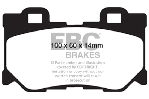 EBC Yellowstuff is an aramid fibre based brake compound with high brake effect form cold and is possibly one of the first ever compounds that can be used for STREET AND TRACK DRIVING. These pads do not require warm up but do get even stronger under the heat of hard driving. These are not a low dust pad and if your desire is for a low dust premium street use pad, you should consider EBC Redstuff.When considering full race use, Yellowstuff has been a strong favourite, having been used for two years in the Swedish Camaro Cup and at numerous other race events where a stock caliper system is fitted.It is also the choice of 90-percent of the Mazda MX5 Miata competitors in the UK race series and has an unblemished record as rotor friendly track pad for vehicles up to 2000 lbs weight or 200 BHP.In the USA the SCCA and NASA drivershave been testing Yellowstuff with feedback and good reports POURING in from a 543 test driver major market proving event with these groups. Read that figure again 543 test drivers.There is no guesswork here.