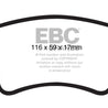 There are TWO reasons our customers love Redstuff, First because they are the lowest dust pad we have encountered by reducing dust by 60-90-percent. Plus the minimal dust you see is very easily removed with a simple sponge wash as it contains no steel fibre particles as in ALL OTHER pads. Second they brake like an alligator right from cold (as good as Original pads or better) and just get better as they heat up.This material is a Synthetic Fiber based brake compound enhanced with ceramic particles. If you have previously tried EBC redstuff (pre-ceramic compound) this material is light years ahead. It lasts longer; it brakes better and is quieter. Being a hard wearing pad, bed-in times can be as long as 1000 miles and drivers must be patient until the pad takes up the shape of their disc (brake rotor). This is a truly impressive fast road pad for repeated heavy braking.It emits far less dust than semi-metallic pads and has been proven to stop a passenger car/sedan/sport compact/hot hatch 13 metres quicker than OEM pads from 100mph/160kph. Features EBC Brake-In surface coating which conditions rotor surface and accelerates pad bed-in. Nominal friction coefficient 0.5 with approx. 50-percent dust reduction.Most EBC Red Ceramic pads are approved to ECE R90 brake safety regulation.