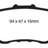 Designed for premium street driving offering better brake effect up to 600-degrees C (1100-degrees F). EBC Greenstuff has a high initial brake effect and gives drivers confidence from first application of the brake pedal. There is no such thing as a NO DUST pad. The very nature of how a brake works requires that some dust be generated to avoid rotor vibration (shimmying). The EBC pad creates less dust and dust is more easily washed off than most. All pads create more dust as they are bedding in especially if rotors are worn. Nominal friction coefficient 0.55. For heavier faster cars and vehicles above 200bhp we strongly recommend Redstuff which DOES offer much less dust.