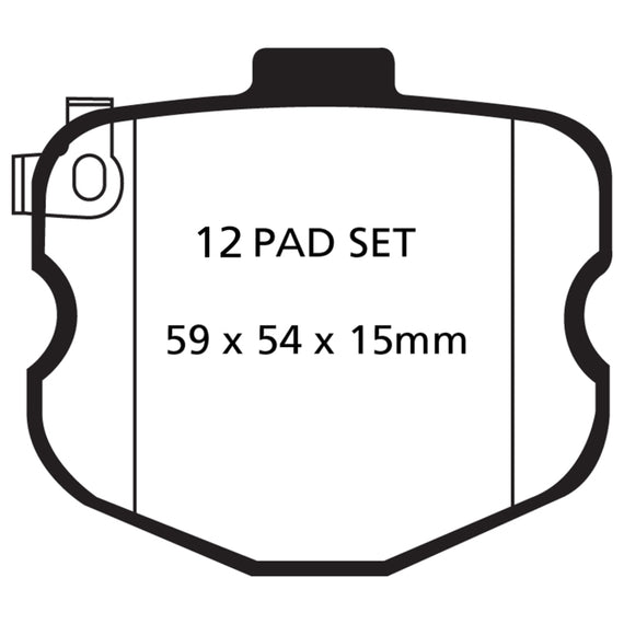 EBC Yellowstuff is an aramid fibre based brake compound with high brake effect form cold and is possibly one of the first ever compounds that can be used for STREET AND TRACK DRIVING. These pads do not require warm up but do get even stronger under the heat of hard driving. These are not a low dust pad and if your desire is for a low dust premium street use pad, you should consider EBC Redstuff.When considering full race use, Yellowstuff has been a strong favourite, having been used for two years in the Swedish Camaro Cup and at numerous other race events where a stock caliper system is fitted.It is also the choice of 90-percent of the Mazda MX5 Miata competitors in the UK race series and has an unblemished record as rotor friendly track pad for vehicles up to 2000 lbs weight or 200 BHP.In the USA the SCCA and NASA drivershave been testing Yellowstuff with feedback and good reports POURING in from a 543 test driver major market proving event with these groups. Read that figure again 543 test drivers.There is no guesswork here.