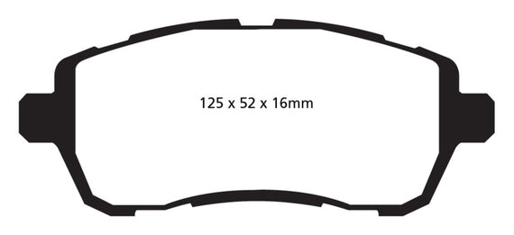 EBC Yellowstuff is an aramid fibre based brake compound with high brake effect form cold and is possibly one of the first ever compounds that can be used for STREET AND TRACK DRIVING. These pads do not require warm up but do get even stronger under the heat of hard driving. These are not a low dust pad and if your desire is for a low dust premium street use pad, you should consider EBC Redstuff.When considering full race use, Yellowstuff has been a strong favourite, having been used for two years in the Swedish Camaro Cup and at numerous other race events where a stock caliper system is fitted.It is also the choice of 90-percent of the Mazda MX5 Miata competitors in the UK race series and has an unblemished record as rotor friendly track pad for vehicles up to 2000 lbs weight or 200 BHP.In the USA the SCCA and NASA drivershave been testing Yellowstuff with feedback and good reports POURING in from a 543 test driver major market proving event with these groups. Read that figure again 543 test drivers.There is no guesswork here.