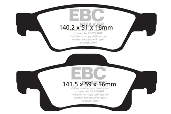 The UK EFI Bristol factory of EBC Brakes has used new ECO friendly technology to develop a brake pad that has unusually high friction levels yet still has good manners for street use with brake effect being strong from cold when the brake is first applied. The race pedigree of the material used also guarantees effective stopping up to temperatures exceeding 1400 F well above the maximum experienced in heavy braking, towing or downhill descents. Winter testing in Ohio on a fleet five popular light trucks showed us the proof on cold braking in the worst wet and cold conditions where many performance brakes would not even start to show good brake effect. So these are pads that have an extremely wide range of usability. The new carbon granule based Extra Duty material is also rotor friendly, minimal in dust and noiseless and each set is supplied with revolutionary NUCAP piston insert shims, another first from EBC