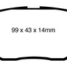 Designed for premium street driving offering better brake effect up to 600-degrees C (1100-degrees F). EBC Greenstuff has a high initial brake effect and gives drivers confidence from first application of the brake pedal. There is no such thing as a NO DUST pad. The very nature of how a brake works requires that some dust be generated to avoid rotor vibration (shimmying). The EBC pad creates less dust and dust is more easily washed off than most. All pads create more dust as they are bedding in especially if rotors are worn. Nominal friction coefficient 0.55. For heavier faster cars and vehicles above 200bhp we strongly recommend Redstuff which DOES offer much less dust.