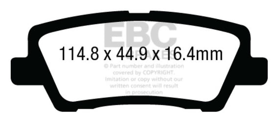 There are TWO reasons our customers love Redstuff, First because they are the lowest dust pad we have encountered by reducing dust by 60-90-percent. Plus the minimal dust you see is very easily removed with a simple sponge wash as it contains no steel fibre particles as in ALL OTHER pads. Second they brake like an alligator right from cold (as good as Original pads or better) and just get better as they heat up.This material is a Synthetic Fiber based brake compound enhanced with ceramic particles. If you have previously tried EBC redstuff (pre-ceramic compound) this material is light years ahead. It lasts longer; it brakes better and is quieter. Being a hard wearing pad, bed-in times can be as long as 1000 miles and drivers must be patient until the pad takes up the shape of their disc (brake rotor). This is a truly impressive fast road pad for repeated heavy braking.It emits far less dust than semi-metallic pads and has been proven to stop a passenger car/sedan/sport compact/hot hatch 13 metres quicker than OEM pads from 100mph/160kph. Features EBC Brake-In surface coating which conditions rotor surface and accelerates pad bed-in. Nominal friction coefficient 0.5 with approx. 50-percent dust reduction.Most EBC Red Ceramic pads are approved to ECE R90 brake safety regulation.