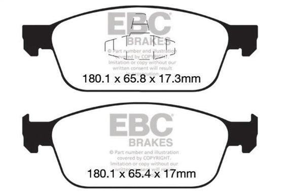EBC Yellowstuff is an aramid fibre based brake compound with high brake effect form cold and is possibly one of the first ever compounds that can be used for STREET AND TRACK DRIVING. These pads do not require warm up but do get even stronger under the heat of hard driving. These are not a low dust pad and if your desire is for a low dust premium street use pad, you should consider EBC Redstuff.When considering full race use, Yellowstuff has been a strong favourite, having been used for two years in the Swedish Camaro Cup and at numerous other race events where a stock caliper system is fitted.It is also the choice of 90-percent of the Mazda MX5 Miata competitors in the UK race series and has an unblemished record as rotor friendly track pad for vehicles up to 2000 lbs weight or 200 BHP.In the USA the SCCA and NASA drivershave been testing Yellowstuff with feedback and good reports POURING in from a 543 test driver major market proving event with these groups. Read that figure again 543 test drivers.There is no guesswork here.