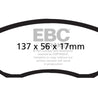 EBC Yellowstuff is an aramid fibre based brake compound with high brake effect form cold and is possibly one of the first ever compounds that can be used for STREET AND TRACK DRIVING. These pads do not require warm up but do get even stronger under the heat of hard driving. These are not a low dust pad and if your desire is for a low dust premium street use pad, you should consider EBC Redstuff.When considering full race use, Yellowstuff has been a strong favourite, having been used for two years in the Swedish Camaro Cup and at numerous other race events where a stock caliper system is fitted.It is also the choice of 90-percent of the Mazda MX5 Miata competitors in the UK race series and has an unblemished record as rotor friendly track pad for vehicles up to 2000 lbs weight or 200 BHP.In the USA the SCCA and NASA drivershave been testing Yellowstuff with feedback and good reports POURING in from a 543 test driver major market proving event with these groups. Read that figure again 543 test drivers.There is no guesswork here.