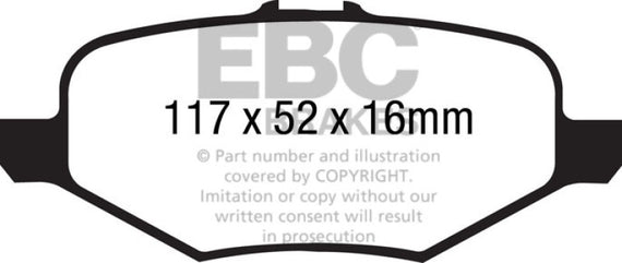 EBC Yellowstuff is an aramid fibre based brake compound with high brake effect form cold and is possibly one of the first ever compounds that can be used for STREET AND TRACK DRIVING. These pads do not require warm up but do get even stronger under the heat of hard driving. These are not a low dust pad and if your desire is for a low dust premium street use pad, you should consider EBC Redstuff.When considering full race use, Yellowstuff has been a strong favourite, having been used for two years in the Swedish Camaro Cup and at numerous other race events where a stock caliper system is fitted.It is also the choice of 90-percent of the Mazda MX5 Miata competitors in the UK race series and has an unblemished record as rotor friendly track pad for vehicles up to 2000 lbs weight or 200 BHP.In the USA the SCCA and NASA drivershave been testing Yellowstuff with feedback and good reports POURING in from a 543 test driver major market proving event with these groups. Read that figure again 543 test drivers.There is no guesswork here.