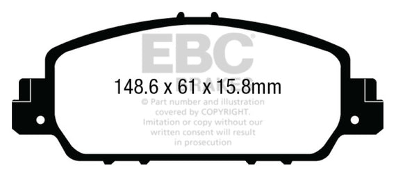 EBC Yellowstuff is an aramid fibre based brake compound with high brake effect form cold and is possibly one of the first ever compounds that can be used for STREET AND TRACK DRIVING. These pads do not require warm up but do get even stronger under the heat of hard driving. These are not a low dust pad and if your desire is for a low dust premium street use pad, you should consider EBC Redstuff.When considering full race use, Yellowstuff has been a strong favourite, having been used for two years in the Swedish Camaro Cup and at numerous other race events where a stock caliper system is fitted.It is also the choice of 90-percent of the Mazda MX5 Miata competitors in the UK race series and has an unblemished record as rotor friendly track pad for vehicles up to 2000 lbs weight or 200 BHP.In the USA the SCCA and NASA drivershave been testing Yellowstuff with feedback and good reports POURING in from a 543 test driver major market proving event with these groups. Read that figure again 543 test drivers.There is no guesswork here.