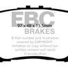 There are TWO reasons our customers love Redstuff, First because they are the lowest dust pad we have encountered by reducing dust by 60-90-percent. Plus the minimal dust you see is very easily removed with a simple sponge wash as it contains no steel fibre particles as in ALL OTHER pads. Second they brake like an alligator right from cold (as good as Original pads or better) and just get better as they heat up.This material is a Synthetic Fiber based brake compound enhanced with ceramic particles. If you have previously tried EBC redstuff (pre-ceramic compound) this material is light years ahead. It lasts longer; it brakes better and is quieter. Being a hard wearing pad, bed-in times can be as long as 1000 miles and drivers must be patient until the pad takes up the shape of their disc (brake rotor). This is a truly impressive fast road pad for repeated heavy braking.It emits far less dust than semi-metallic pads and has been proven to stop a passenger car/sedan/sport compact/hot hatch 13 metres quicker than OEM pads from 100mph/160kph. Features EBC Brake-In surface coating which conditions rotor surface and accelerates pad bed-in. Nominal friction coefficient 0.5 with approx. 50-percent dust reduction.Most EBC Red Ceramic pads are approved to ECE R90 brake safety regulation.