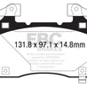 There are TWO reasons our customers love Redstuff, First because they are the lowest dust pad we have encountered by reducing dust by 60-90-percent. Plus the minimal dust you see is very easily removed with a simple sponge wash as it contains no steel fibre particles as in ALL OTHER pads. Second they brake like an alligator right from cold (as good as Original pads or better) and just get better as they heat up.This material is a Synthetic Fiber based brake compound enhanced with ceramic particles. If you have previously tried EBC redstuff (pre-ceramic compound) this material is light years ahead. It lasts longer; it brakes better and is quieter. Being a hard wearing pad, bed-in times can be as long as 1000 miles and drivers must be patient until the pad takes up the shape of their disc (brake rotor). This is a truly impressive fast road pad for repeated heavy braking.It emits far less dust than semi-metallic pads and has been proven to stop a passenger car/sedan/sport compact/hot hatch 13 metres quicker than OEM pads from 100mph/160kph. Features EBC Brake-In surface coating which conditions rotor surface and accelerates pad bed-in. Nominal friction coefficient 0.5 with approx. 50-percent dust reduction.Most EBC Red Ceramic pads are approved to ECE R90 brake safety regulation.