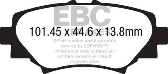 There are TWO reasons our customers love Redstuff, First because they are the lowest dust pad we have encountered by reducing dust by 60-90-percent. Plus the minimal dust you see is very easily removed with a simple sponge wash as it contains no steel fibre particles as in ALL OTHER pads. Second they brake like an alligator right from cold (as good as Original pads or better) and just get better as they heat up.This material is a Synthetic Fiber based brake compound enhanced with ceramic particles. If you have previously tried EBC redstuff (pre-ceramic compound) this material is light years ahead. It lasts longer; it brakes better and is quieter. Being a hard wearing pad, bed-in times can be as long as 1000 miles and drivers must be patient until the pad takes up the shape of their disc (brake rotor). This is a truly impressive fast road pad for repeated heavy braking.It emits far less dust than semi-metallic pads and has been proven to stop a passenger car/sedan/sport compact/hot hatch 13 metres quicker than OEM pads from 100mph/160kph. Features EBC Brake-In surface coating which conditions rotor surface and accelerates pad bed-in. Nominal friction coefficient 0.5 with approx. 50-percent dust reduction.Most EBC Red Ceramic pads are approved to ECE R90 brake safety regulation.