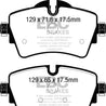 Designed for premium street driving offering better brake effect up to 600-degrees C (1100-degrees F). EBC Greenstuff has a high initial brake effect and gives drivers confidence from first application of the brake pedal. There is no such thing as a NO DUST pad. The very nature of how a brake works requires that some dust be generated to avoid rotor vibration (shimmying). The EBC pad creates less dust and dust is more easily washed off than most. All pads create more dust as they are bedding in especially if rotors are worn. Nominal friction coefficient 0.55. For heavier faster cars and vehicles above 200bhp we strongly recommend Redstuff which DOES offer much less dust.