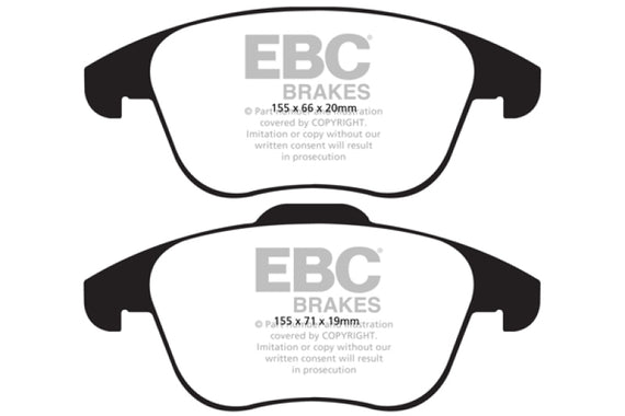 Designed for premium street driving offering better brake effect up to 600-degrees C (1100-degrees F). EBC Greenstuff has a high initial brake effect and gives drivers confidence from first application of the brake pedal. There is no such thing as a NO DUST pad. The very nature of how a brake works requires that some dust be generated to avoid rotor vibration (shimmying). The EBC pad creates less dust and dust is more easily washed off than most. All pads create more dust as they are bedding in especially if rotors are worn. Nominal friction coefficient 0.55. For heavier faster cars and vehicles above 200bhp we strongly recommend Redstuff which DOES offer much less dust.