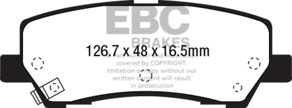 There are TWO reasons our customers love Redstuff, First because they are the lowest dust pad we have encountered by reducing dust by 60-90-percent. Plus the minimal dust you see is very easily removed with a simple sponge wash as it contains no steel fibre particles as in ALL OTHER pads. Second they brake like an alligator right from cold (as good as Original pads or better) and just get better as they heat up.This material is a Synthetic Fiber based brake compound enhanced with ceramic particles. If you have previously tried EBC redstuff (pre-ceramic compound) this material is light years ahead. It lasts longer; it brakes better and is quieter. Being a hard wearing pad, bed-in times can be as long as 1000 miles and drivers must be patient until the pad takes up the shape of their disc (brake rotor). This is a truly impressive fast road pad for repeated heavy braking.It emits far less dust than semi-metallic pads and has been proven to stop a passenger car/sedan/sport compact/hot hatch 13 metres quicker than OEM pads from 100mph/160kph. Features EBC Brake-In surface coating which conditions rotor surface and accelerates pad bed-in. Nominal friction coefficient 0.5 with approx. 50-percent dust reduction.Most EBC Red Ceramic pads are approved to ECE R90 brake safety regulation.