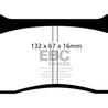 There are TWO reasons our customers love Redstuff, First because they are the lowest dust pad we have encountered by reducing dust by 60-90-percent. Plus the minimal dust you see is very easily removed with a simple sponge wash as it contains no steel fibre particles as in ALL OTHER pads. Second they brake like an alligator right from cold (as good as Original pads or better) and just get better as they heat up.This material is a Synthetic Fiber based brake compound enhanced with ceramic particles. If you have previously tried EBC redstuff (pre-ceramic compound) this material is light years ahead. It lasts longer; it brakes better and is quieter. Being a hard wearing pad, bed-in times can be as long as 1000 miles and drivers must be patient until the pad takes up the shape of their disc (brake rotor). This is a truly impressive fast road pad for repeated heavy braking.It emits far less dust than semi-metallic pads and has been proven to stop a passenger car/sedan/sport compact/hot hatch 13 metres quicker than OEM pads from 100mph/160kph. Features EBC Brake-In surface coating which conditions rotor surface and accelerates pad bed-in. Nominal friction coefficient 0.5 with approx. 50-percent dust reduction.Most EBC Red Ceramic pads are approved to ECE R90 brake safety regulation.