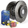 Save 15 percent over cost of buying separate parts with this quality pad and rotor kit which includes pads rotorspads rotors and caliper lube.EBC flagship GG rated yellowstuff high friction pads for maximum brake effect fully shimmed chamfered and slotted finished wth patented EBC Brake in coating for fast pad seating. Matched with EBC GD series wide aperture and spot drilled vented sport rotors for coolest brakes and fast dust,gas, dirt and debris removal, these kits uprate brakes on a wide range of vehicles from trucks to Muscle cars and High HP sport sedans/compacts. If maximum brakes for street use is what you need this is THE kit to choose.