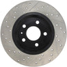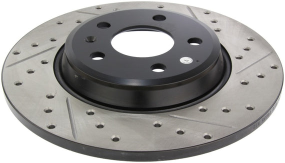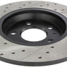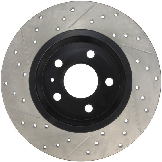 StopTech Drilled and Slotted Sport Rotors are 1-piece direct replacement brake discs for factory brake systems and stock calipers that look great behind your wheels – and offer significantly improved braking performance. The unique cross-drilling and slotting aids with heat and brake dust dispersal; prevents glazing of the pads; adds bite and improves wet and dry braking performance. Built to last; the black e-coating provides protection from corrosion and the high carbon metallurgy (in most applications) offers quieter operation; better crack resistance and increased performance.