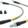 StopTech Stainless Steel Braided Brake Lines provide a quicker; firmer; more consistent pedal response by maintaining consistent brake pressure. Additionally; stainless steel lines provide precision brake modulation; especially during threshold braking. The improvement in pedal feel is more dramatic on older vehicles where the factory rubber line may have softened and swelled due to age. A variety of end fittings are available to meet application needs. All fittings are engineered for proper fit and durability. All necessary brackets and fasteners are included with each line kit.