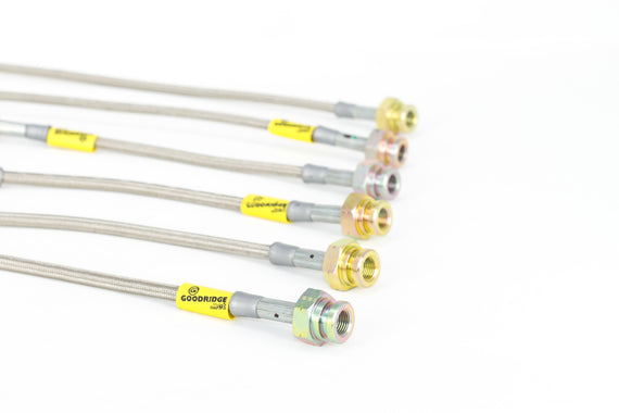 Goodridge stainless steel brake or clutch hose kits are available to suit all models of car, whatever the make. Kits feature the finest quality hose, consisting of a PTFE inner with a stainless steel outerbraid. This eliminates the spongy pedal feel under arduous conditions, giving greater braking efficiency or clutch operation as well as providing superior resistance to abrasion and corrosion. These kits, therefore, not only provide the reliability and safety demanded but offer brilliant good looks that improve the appearance of any installation. Most brake and clutch lines car kit specifications are on file but any additional information is always appreciated