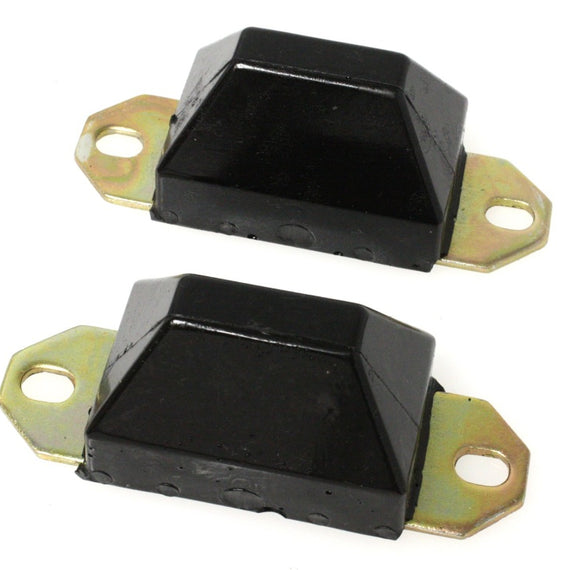 Energy Suspension(R) performance bump stops help cushion a collapsing suspension, preventing bottoming-out and expensive vehicle damage. Hyper-Flex(TM) performance polyurethane bump stops for control arms, traction bars, leaf springs, etc. are guaranteed to last longer and operate more efficiently than original rubber stops.The smaller, general purpose bullet shaped snubber is ideal for control arms. The low profile button head is for use when clearance is limited. Our large competition race style bump stops smooth out compression better and have a large reinforced metal plate welded to the mounting plate and molded-in. Each style is specially designed for a perfect and custom fit and each style has it's own durometer, hardness, characteristics. Energy's wide selection of bump stops are available in red or black color.