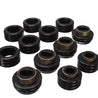 Will replace distorted and worn-out original rubber mounts to maintain car body and truck cab to bed alignment. Original rubber mounts are so soft they often crack, distort, and crush so badly they often fall off. And aluminum body mounts are too harsh for street use that they tend to break and cause other components to break. Energy's specially formulated Hyper-Flex(TM) polyurethane cab and body mounts combine the best qualities of both: they're soft enough for a smooth ride, yet rugged enough for the most demanding road or track. Most sets have a strong zinc plated steel ring molded into them - for added durability and when the application requires it.