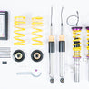 Today, more and more premium vehicles are being fitted with an electronically adaptive suspension system. Before KW DDC Plug & Play coilovers were introduced to the market, you often had to make compromises when customizing your suspension lowering, and often had to eliminate the active electronic control system and comfort features that you had paid extra for. With the adaptive KW DDC Plug & Play coilover suspensions there are no compromises to be made and you can combine the control of your standard damper system with a seamless suspension lowering and the driving dynamics tuned by KW suspensions experienced engineers. During installation, the factory electronic struts are simply replaced by KW INOX-LINE stainless steel coilover struts and the adaptive KW dampers are connected to the on-board electronics using your vehicles original plugs. Fitting a KW DDC Plug & Play coilover suspension requires no further modifications. The standard dampers can simply be replaced with the KW DDC (Dynamic Damping Control) coilover kit. The existing controls and the button installed in the vehicle interior for the operation of the damper control will now operate the KW DDC Plug & Play coilovers. For the first time, the KW DDC Plug & Play coilover kit combines the advantages of a KW coilover suspension with the convenience of the standard electronic damper controls. At the push of a button, the driver can choose between the Comfort, Normal and Sport setup optimized for the KW coilover suspension. In addition, the KW coilover suspension allows individual ride height adjustability within the tested Adjustment -ange. Our original equipment quality suspension technology -s compatible with various vehicle manufacturers. As a result, the adaptive KW DDC suspension is instantly recognized by the on-board electronics. So all the displays and controls of your factory vehicle remain fully functional but you get a completely new driving experience.