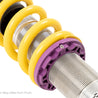 The KW Variant 1 INOX-LINE coilover kit is our entry point into our street performance lineup. The high-quality INOX-LINE stainless steel coilover struts, corrosion resistant springs, bumps stops and dampers that are optimally tuned by our engineers. The result is a balanced and sporty feel specific to each vehicle application designed for long lasting driving pleasure. With KW Variant 1 coilovers you can achieve maximum lowering within an approved lowering range that ensures a proper functioning suspension and adequate travel after your car is lowered. Even after years of use you can easily adjust the ride height thanks to the dirt resistant trapezoid thread and composite Adjustment -ollar. KW Variant 1 INOX-LINE coilover rewards the sporty driver with its pre-configured setup. For each vehicle, our engineers develop a specific damper setup and spring rate to increase the driving pleasure with an optimal balance of sportiness and practicality. As with all KW coilovers, the engineers at KW fine tune each application on the Nurburgring Nordschleife and at the KW 7-post chassis dynamics test center. Unlike a mass produced, generic coilover kit, KW coilovers are developed specifically for your vehicle. As a manufacturer, KW uses only its own resources, high quality components and the damper technology -hat was all developed in-house. With the KW Variant 1 coilovers, body roll will be reduced during compression giving you the benefit of a more genuine and direct sporty handling while driving. For over 20 years, KW automotive has been the market leader and driving innovation as a manufacturer of individual suspension solutions for the road and in all types of motorsports. No matter where in the world, gearheads, automobile manufacturers and reputable tuners rely on our KW coilovers made in Germany. With an application list comprising more than 4,600 options KW guarantees an outstanding selection backed by our Limited Lifetime Warranty.
