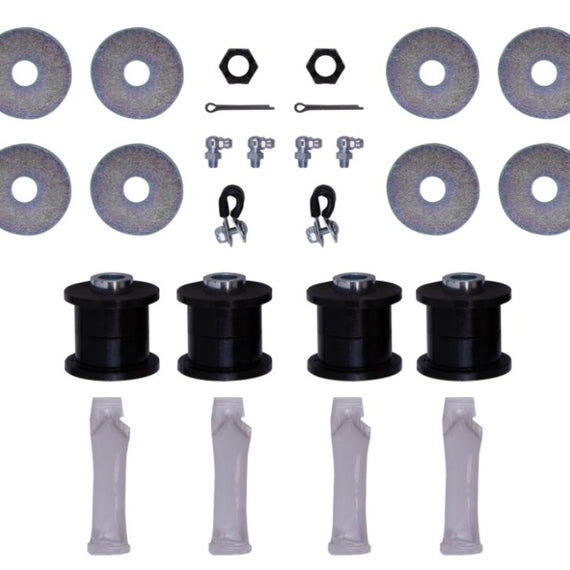 B8 Control Arms are a direct fit upgrade for factory upper control arms on trucks and SUVs. The kit contains a pair of control arms which correct the caster alignment for better straight line stability with lifted suspensions, and the improved pivot angles increase wheel travel and reduce stress on the joints. These strong black powder-coated 4130 chromoly steel arms are a tubular design which allows for more spring and shock clearance and feature greasable polyurethane bushings and heavy duty ball joints for the ideal combination of ride quality and durability with minimal maintenance needed. They come with detailed instructions and all necessary hardware for easy installation and are compatible with all Bilstein shocks and coilover kits. All components are replaceable.