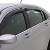 Whether you're winding your way through the scenic route or heading out for your morning commute, nothing makes it easier to enjoy the drive than the original Ventvisor by AVS. Externally mounted and made of impact-resistant acrylic, this curved side window de?ector will shield you from whatever weather comes your way. But it does more than just protect you from the elements -- it refreshes your ride by circulating air and eliminating unwanted odors. When your cab gets musty or wet and your windows start to fog, just roll them down and air it out without worrying about the weather. The Ventvisor is made from ultra-tough materials with a UV resistant finish that refuses to fade, even after extended sun exposure. Its high-grade acrylic material is just the right thickness to be strong yet ?exible and comes precision-engineered to fit your vehicle's year, make, and model. Installation is a breeze with no drilling or special hardware required -- attach with the included 3M automotive grade adhesive and you're ready to hit the road. Plus, it's backed by a Limited Lifetime Warranty. Proudly made in the USA with global materials.