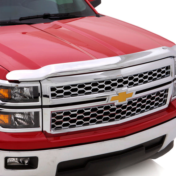 Put the first name in low-profile hood protection to work at the front of your rig. The AVS Aeroskin(R) keeps bugs, dirt and debris off your paint and out of your way while adding that better-than-factory custom touch. Built from high-quality ABS impact-resistant acrylic available in dark smoke finish, matte black or chrome. Custom molded to the contours of your vehicle to fit better and last longer. Its simple, no-drill installation with 3M automotive-grade adhesive tape gets your car, truck, van or SUV fully protected, looking good, and back on the road in no time. Proudly made in the USA with global materials.