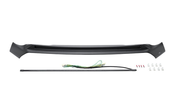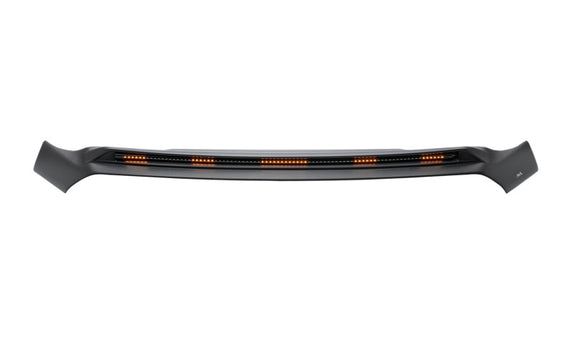 Road warriors, overlanders, and daily drivers unite! AVS has made it easier than ever to light up the trail or illuminate the night with their Aeroskin LightShield Pro. It's the first hood shield featuring fully integrated amber LED running lamps with multiple light output sequences for added ?ash and function. Its curved, aerodynamic design creates a powerful upstream of air that sweeps bugs, dirt, and road debris up and away from your vehicle, leaving your hood looking showroom-?oor-new. The single-piece construction uses UV-resistant Dura-Flex 2000 TPO material, so it bends without breaking, ?exes without cracking, and never discolors from the sun. The 3M automotive-grade adhesive makes installation fast and easy -- no tools or special hardware required. Available in a textured matte black finish. Proudly made in the USA with global materials.