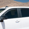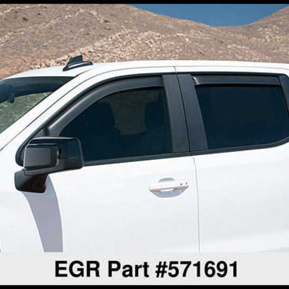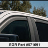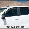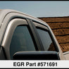 EGR DARK SMOKE In-Channel Window Visors are designed to promote fresh air circulation inside the vehicle. These fully integrated, custom molded designs help to reduce windshield fogging in wet weather for safer driving, and can lower interior temperatures in parked vehicles. The UV protected finish is easy to clean.. Limited lifetime warranty. FRONT & REAR SET.