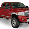 You've equipped your vehicle with oversize wheels and tires for serious off-road traction and clearance. Now you need extra tire coverage to protect your rig's body and maybe even comply with local laws. Bushwacker Extend-A-Fender Flares deliver premium-grade protection and style matched to oversized tires, yet as tough as they are, they go on easily with no drilling required. You can install them in minutes and enjoy them for years. Our exclusive Dura-Flex 2000 material is designed for added durability and flexibility with built-in UV protection. Your Extend-A-Fender Flares resist chalking, cracking, and warping, whether you leave them with their OEM-style matte black finish or paint them for a totally personalized look. Either way, your truck will look factory-equipped for your off-road tires. Extend-A-Fender Flares go on easy, perform tough, and look great.