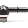 This fitting screws into any female 6AN ORB port and provides a 360 degree swiveling 3/8 SAE quick connect male. This low profile fitting is safe for use with all fluids and is constructed from stainless steel and aluminum.