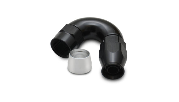 Vibrants offering of non-swivel High Flow Hose End Fittings, designed exclusively for use with our offering of PTFE lined flex hose, deliver the type of quality, leak-free reliability and incredible ease of assembly that industry professionals will appreciate. Now also available in -12 AN. These CNC Machined 6061 Aluminum Alloy Hose Ends feature a full flow design and are optimal for use in race fuel systems as well as Nitrous, Cooling, Oil, Power Steering and Coolant (not suited for brake and hydraulic line applications). Each of these Hose Ends include an Aluminum olive that compresses to the PTFE liner for simple, leak free assembly. Available in Black Hard Anodized finish only.